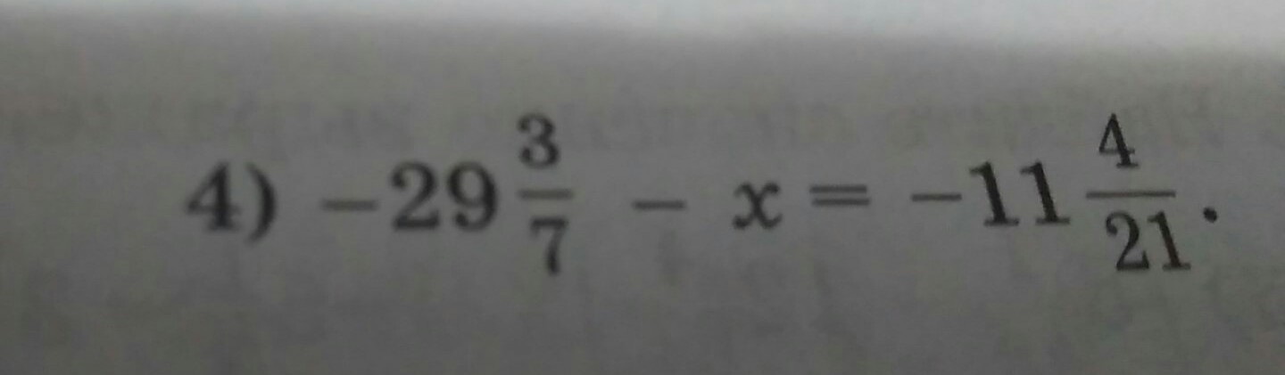 - 29 times frac{3}{7} - x = - 11 frac{4}{21} \  -  frac{87}{7} - x =  frac{44}{21} \  - x =  frac{44}{21} +  frac{87}{7} \  - x =  frac{31}{3} \ x =  -  frac{31}{3}