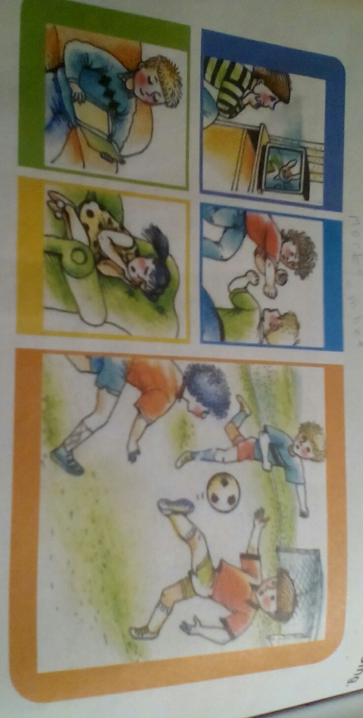 Посмотри на картинку и скажи, что действительно делают её дети.They are watch TV, sleep, read book, fight and play football