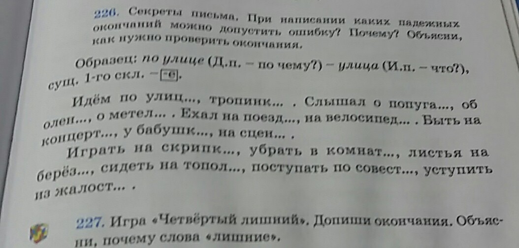 Секреты письма. При написании каких падежных окончаний можно допустить ошибку?Почему?Объясни,как нужно проверитт окончание