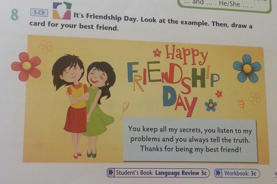 это день дружбы. посмотри на пример. нарисуй открытку своему лучшему другу