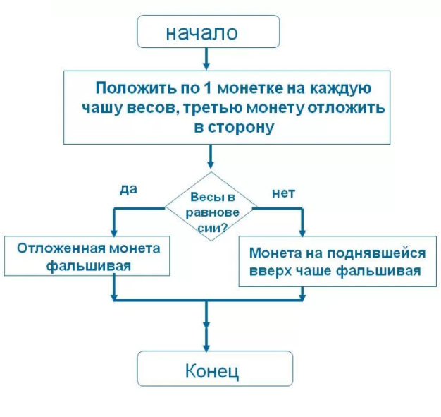 Из трех монет одинакового достоинства одна фальшивая (более легкая). Как ее найти с