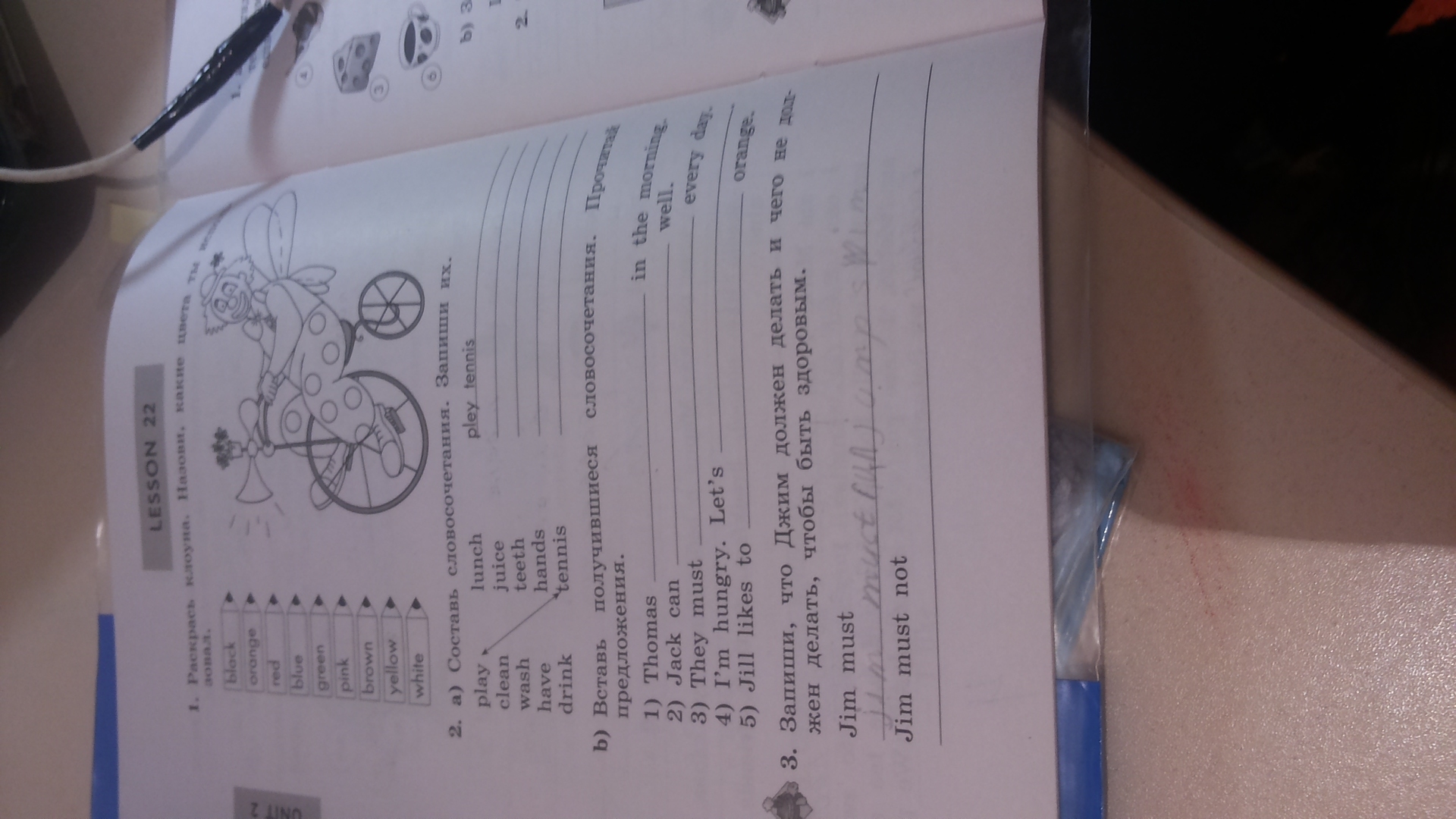 Jim must play tennis or do some other sports, clean teeth, wash hands, have lunch, drink juice, eat more fruit.