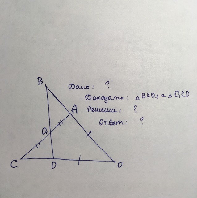 Дано : треугольник САО и треугольник ОДВ