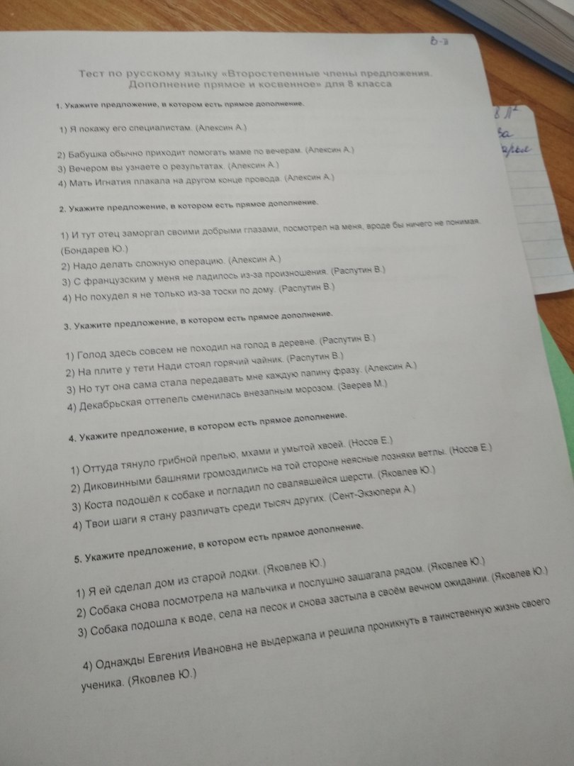Прямые дополнения (В.п. без предлога):
