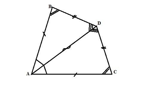 углы: <BAD=<CAD, <ABD=<ACD, <BDA=<CDA .