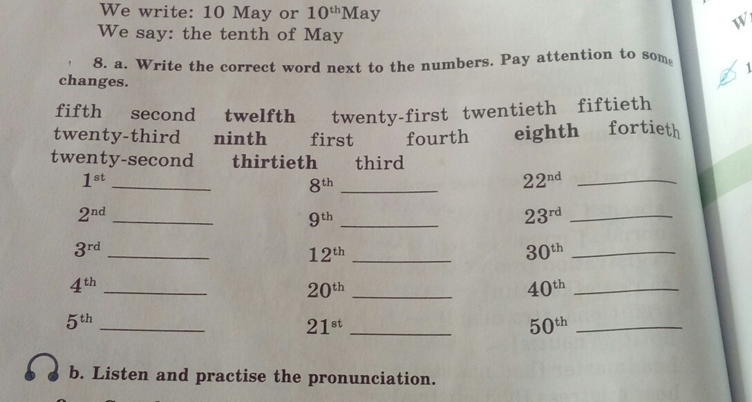 first, second, third, fourth,fifth, eight, ninth, twelfth, twentieth, twenty - first, twenty- second, twenty - third, thirtieth, fourth, fiftieth (это по порядку)