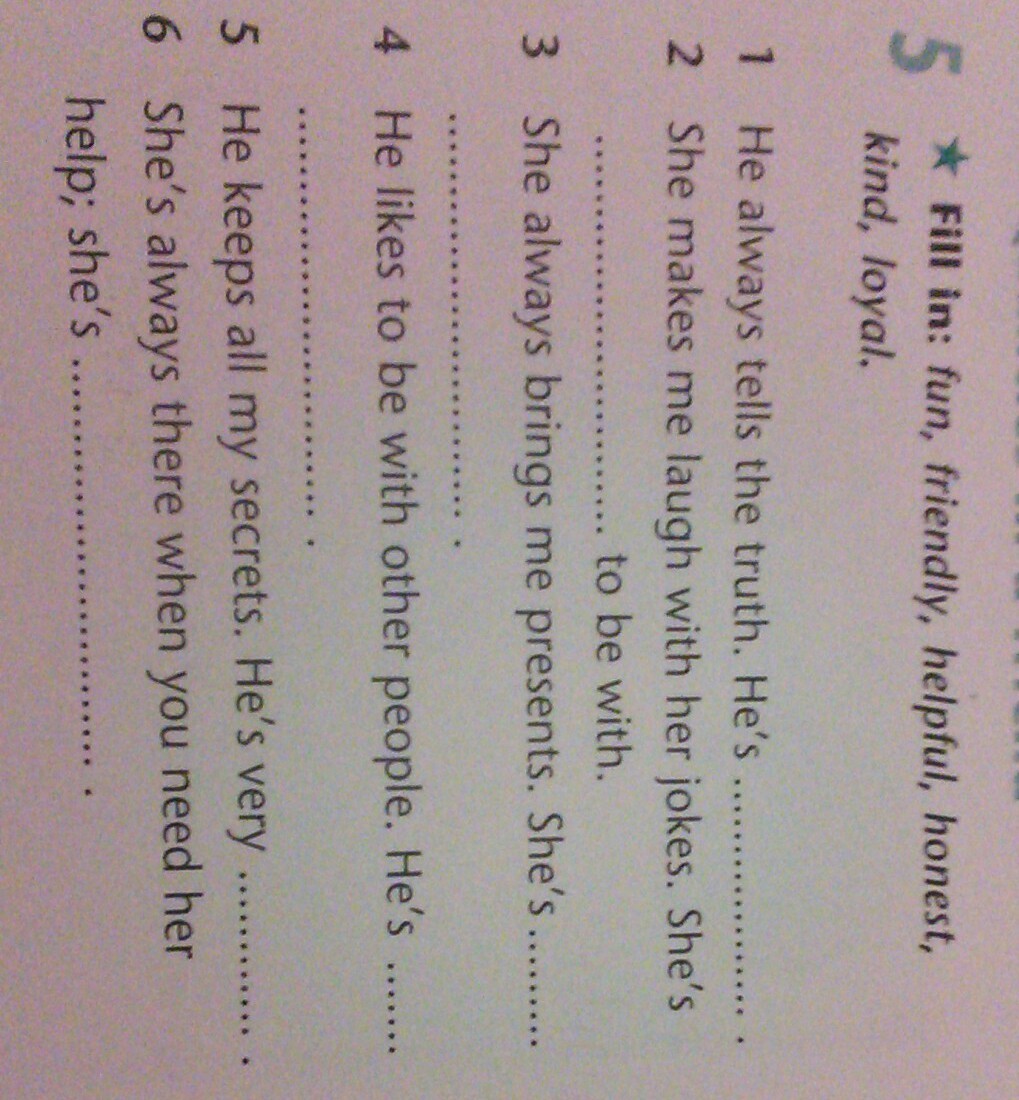 4 He likes to be with other people. He's friendly.