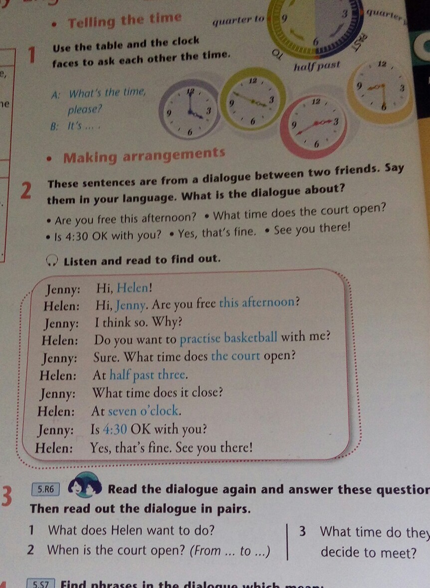 2) The court is open from half past three(3:30) to seven o'clock(7:00)