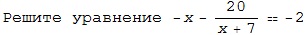 1. Решите уравнение: -х - (20/(х+7)) = -2.