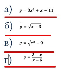 в) х² - 9 ≥ 0, ⇒ х∈(-∞; -3]∪[3; +∞)