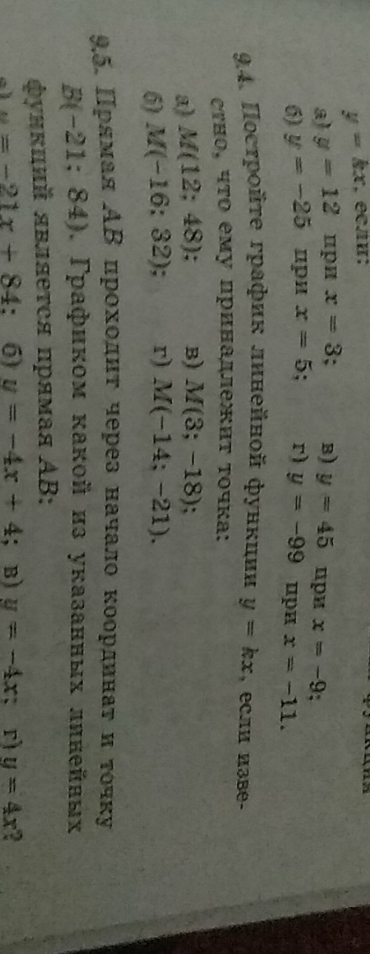 Каждый график ( а это прямая) пройдёт через заданную точку и начало координат.