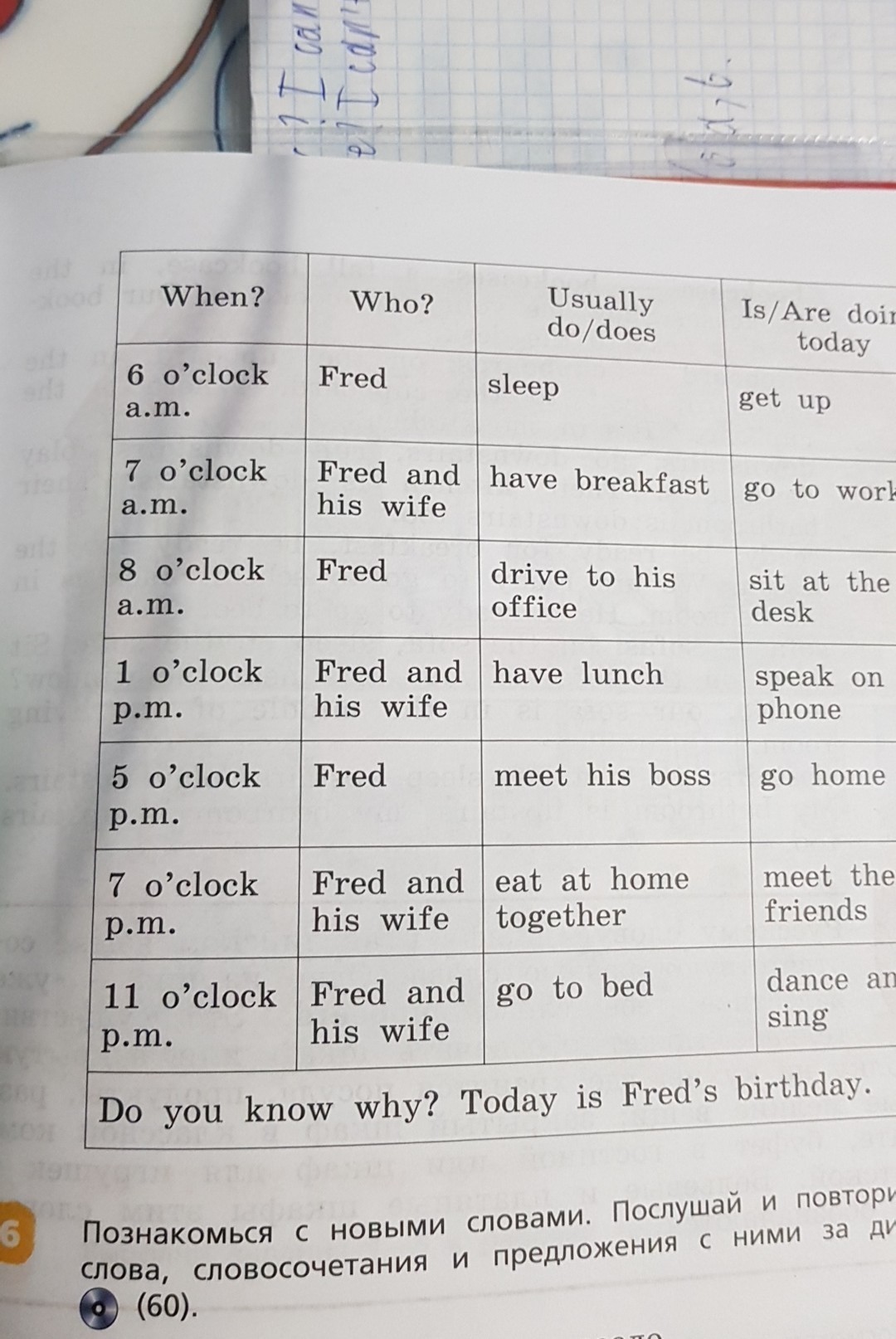 у Фреда выдался весьма необычный день непохожие на все остальные Воспользуйтесь таблицей Расскажи о нём английский язык