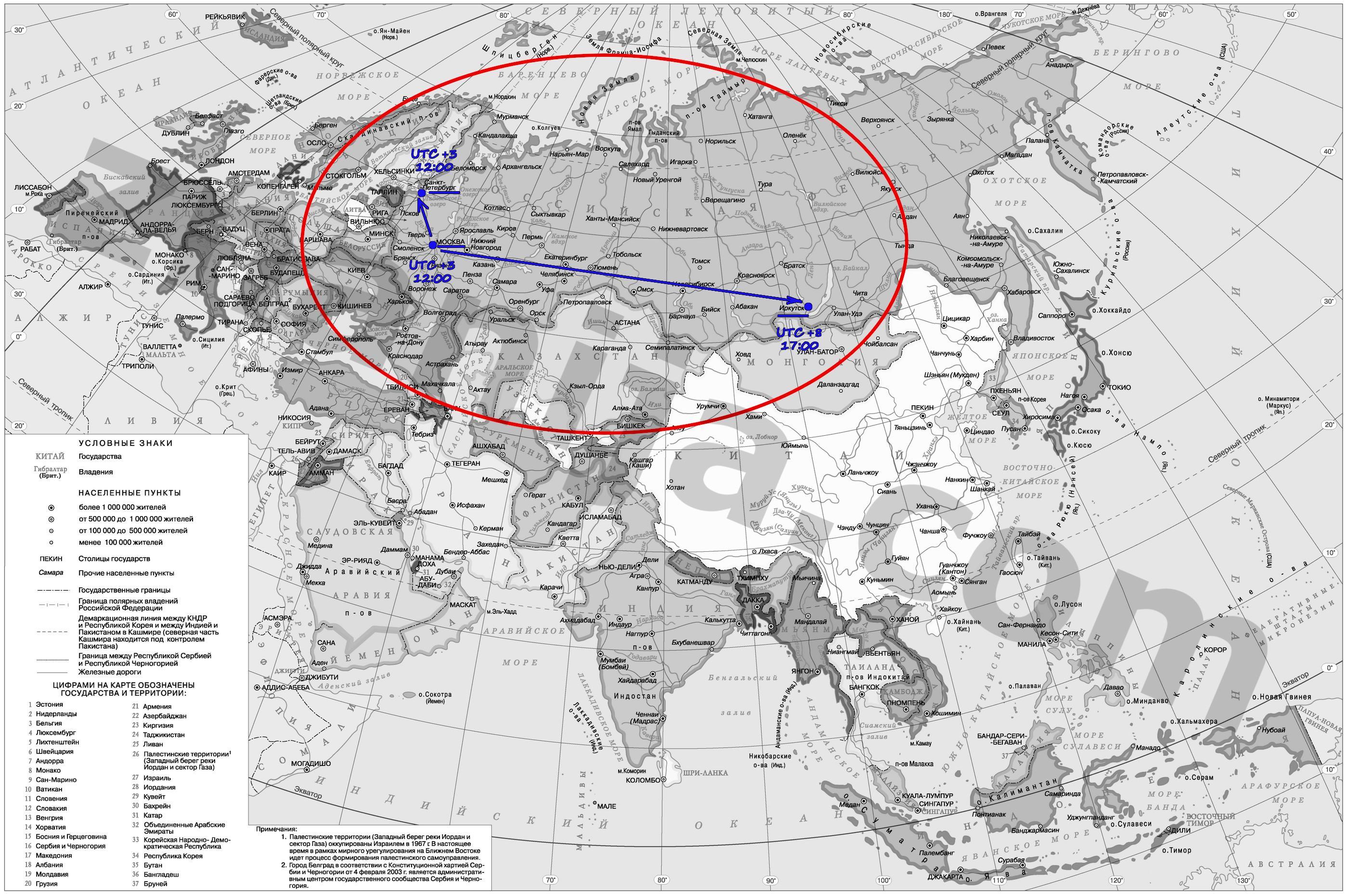 Сперва напомню, что если город находиться западнее точки отсчета, то разница во времени будет со знаком «-», если восточнее, то со знаком «+».