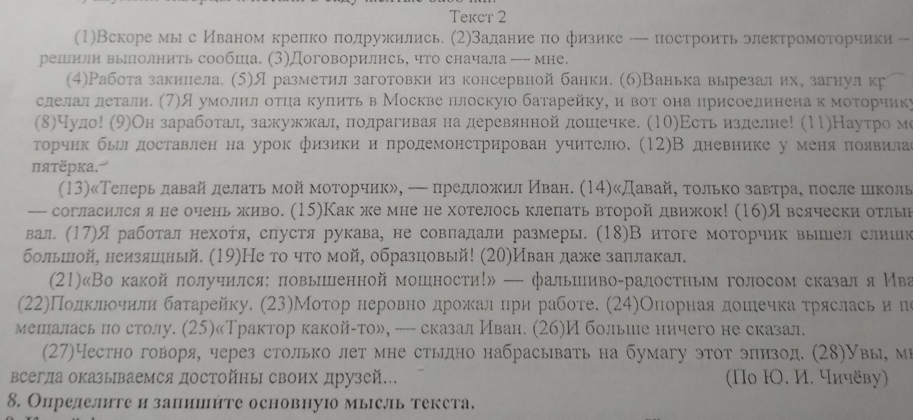 Основная мысль текста - то, что мальчик не хотел, чтобы у его друга работа была лучше, чем у него. И поэтому он нехотя работал и очень в будущем об этом сожалеет.