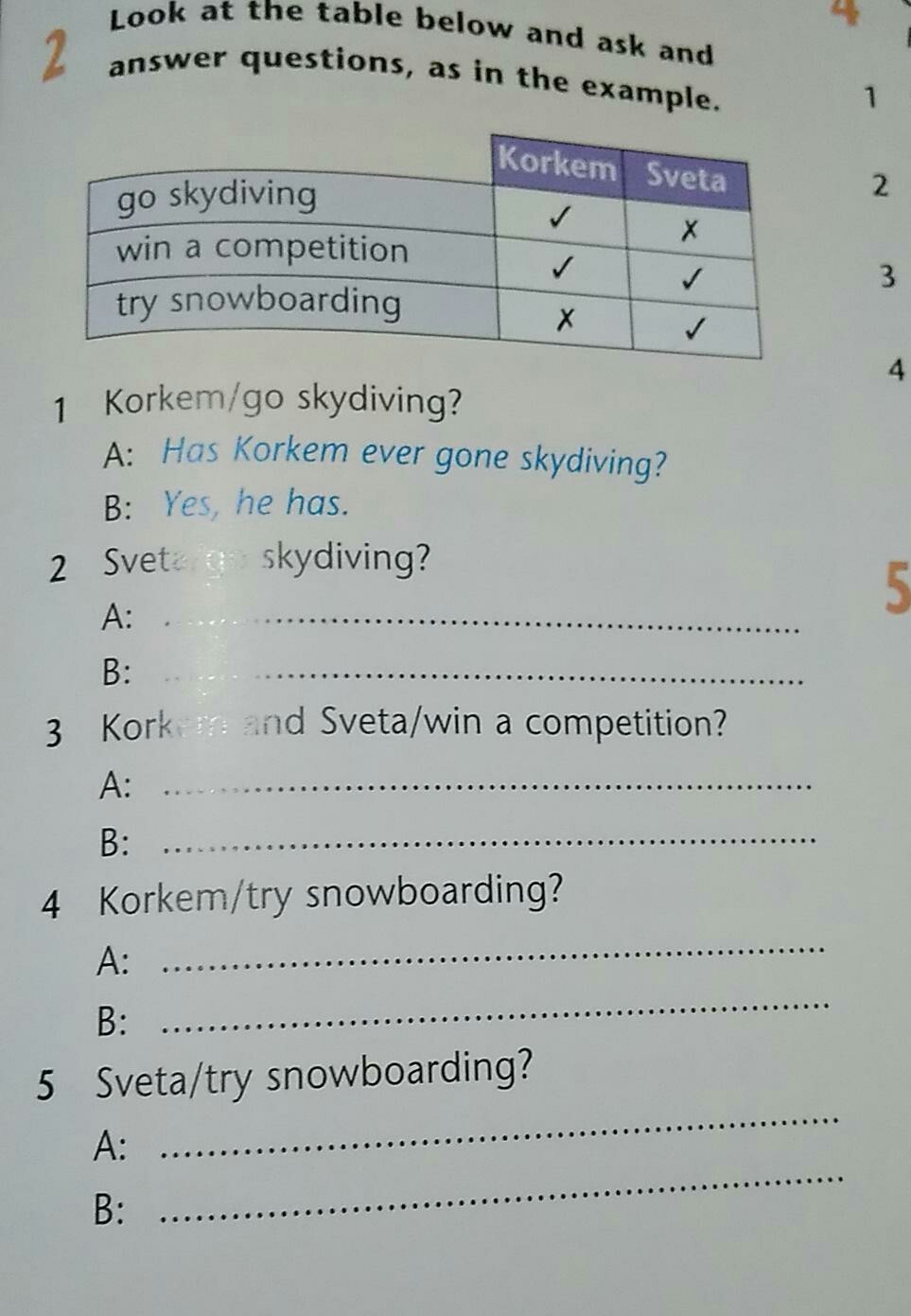 2. A. Has Sveta ever gone skydiving?