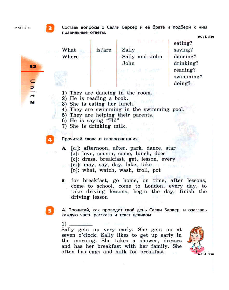 5.Салли встает очень рано. Она встает в семь часов. Обычно любит вставать рано утром....