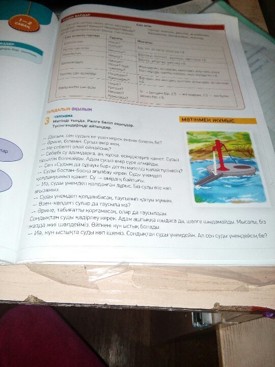 Досым,сен судың не ушін керек екенін білесің бе?Әрине білемін сусыз әмір жоқ.Не себепті олай ойлайсың? себебі су адамдарға аң құсқа өсімдіктерге қажет .сусыз тірілік болмайды. адам сусыз өмір сүре алмайды. сен ,,Судын да сұрауы бар,, деген мәтелді қалай түсінесің? сыды бостан-босқа ағызбау керек.Суды үнемдеп қолдануымыз қажет.Суөөмірдің байлығы.Иә,суды унемдеп қолданған дұрыс. Біз суды өте көп ағызамыз.Суды үнемдеп қолданбасақ,таусылып қалуы мүмкін.Өзен-көлдегі сулар да таүсыла ма?Әрине,табиғатты қорғамасақ,олар да таусылады.Сондықтан суды қадірлеу керек.Адам аштыққа шыдаса да,шөлте шыдамайды.Мысалы,біз жазда жиі шөлдейміз.Өйткені ыстық болады.Иә,күн ыстықта суды көп ішеміз.Сондықтан суды үнемдейік.Ал сен суды үнемдейсің бе?