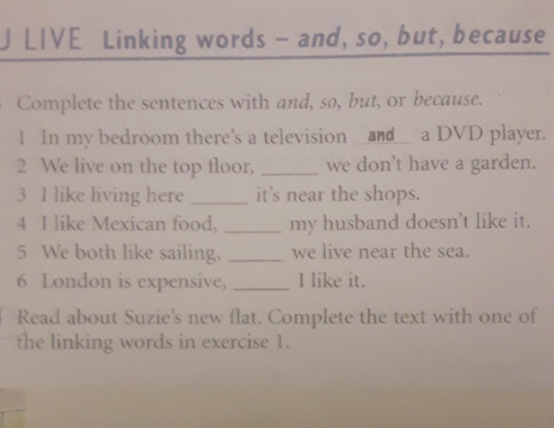 2 so 3 because 4 but 5 and 6 but