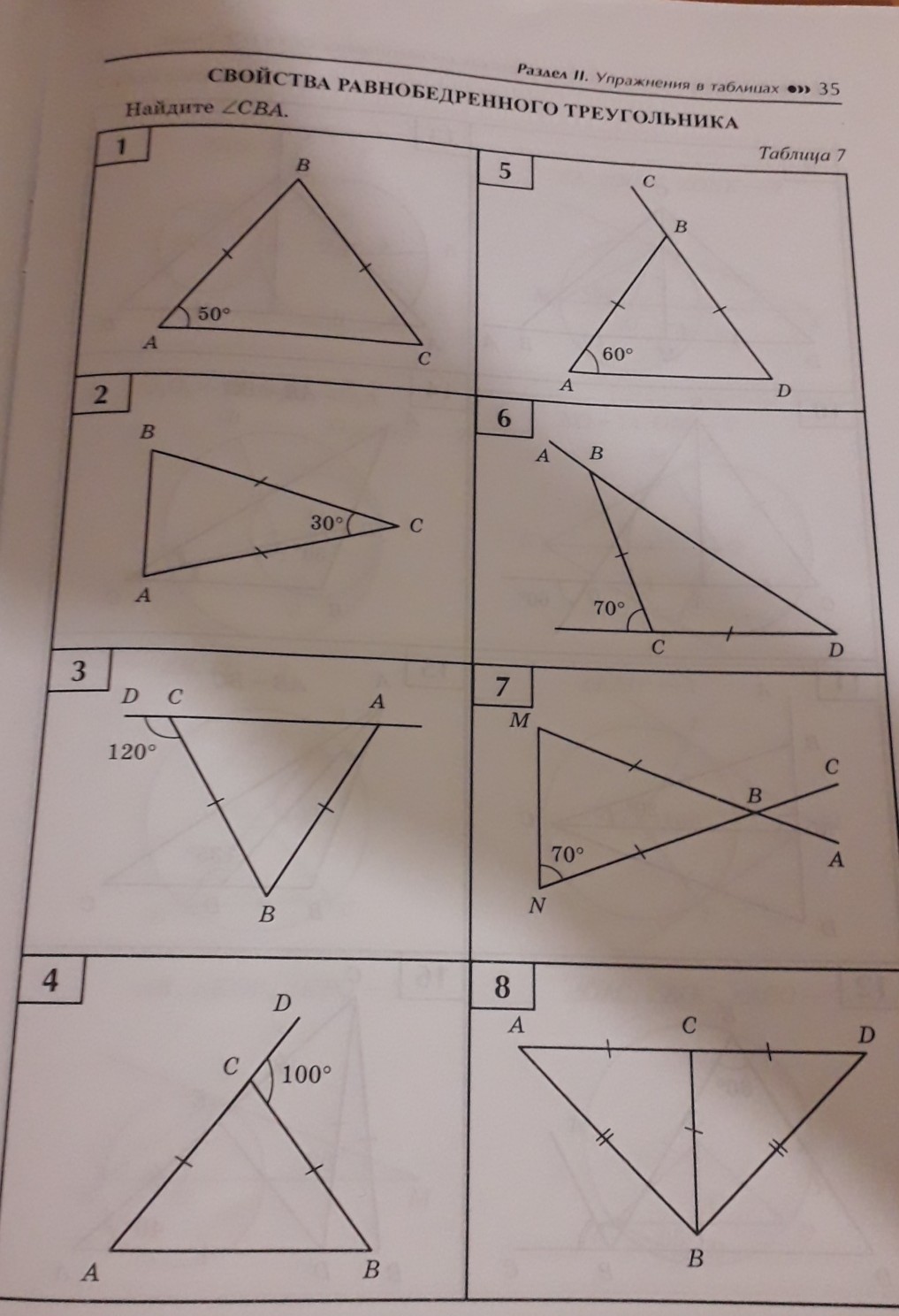 свойство равнобедренного треугольника таблица 7
