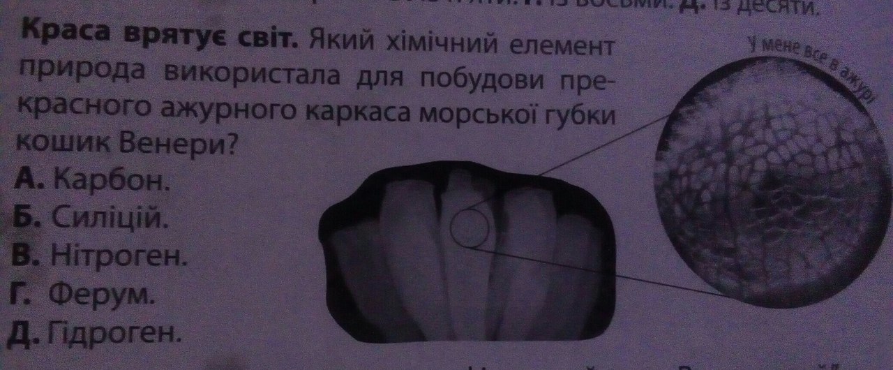 Який хімічний елемент природа використала для побудови прекрасного ажурного каркаса морської губки кошик Венери?