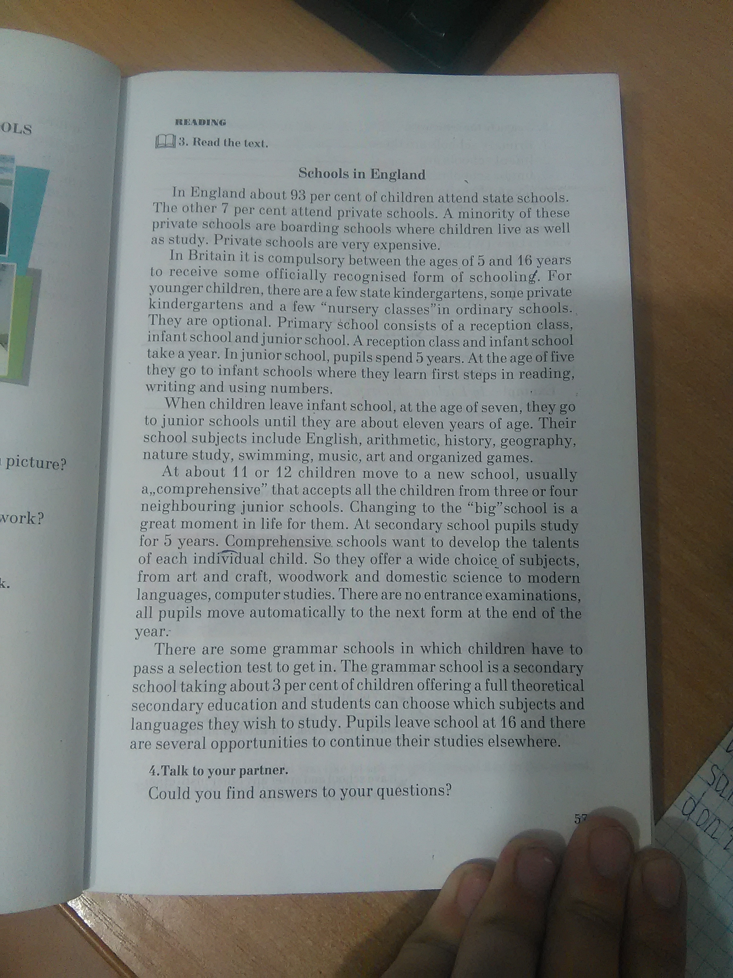 В Англии около 93 процентов детей учатся в государственных школах. А остальные 7 процентов учатся в частных школах. Меньшинство этих частных школ - это школы-интернаты, где дети живут и учатся одновременно. Частные школы - это очень дорогое удовольствие.