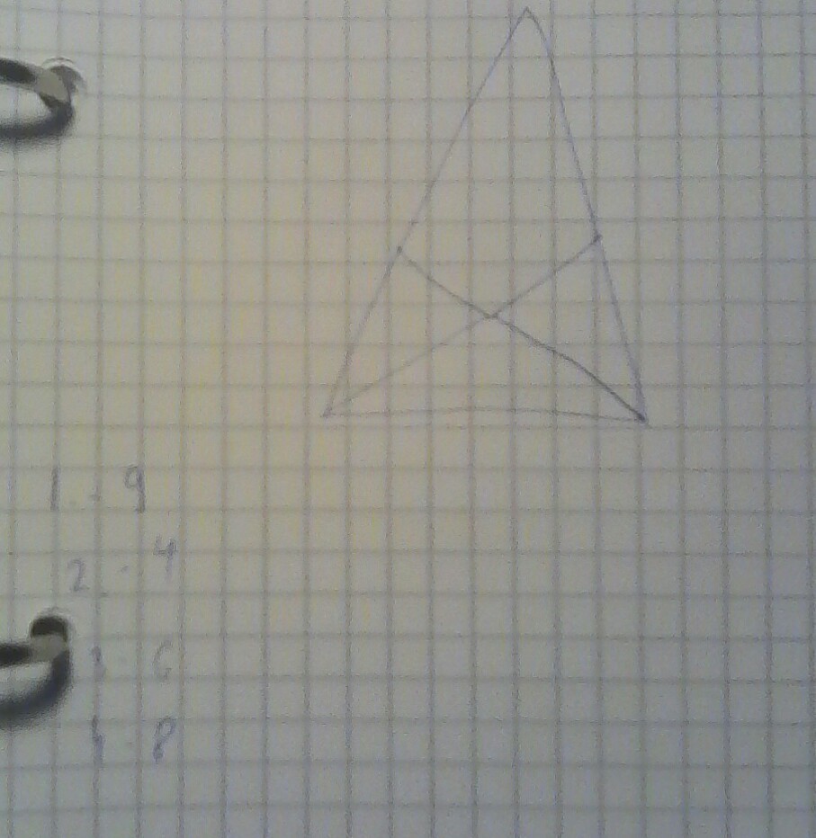 Один главный треугольник. Один нижний маленький. Два боковых маленьких(справа и слева). Два треугольника, которые строятся из одного нижнего и правого(левого) и два треугольника, которые строятся из верхнего и бокового(правого или левого).
