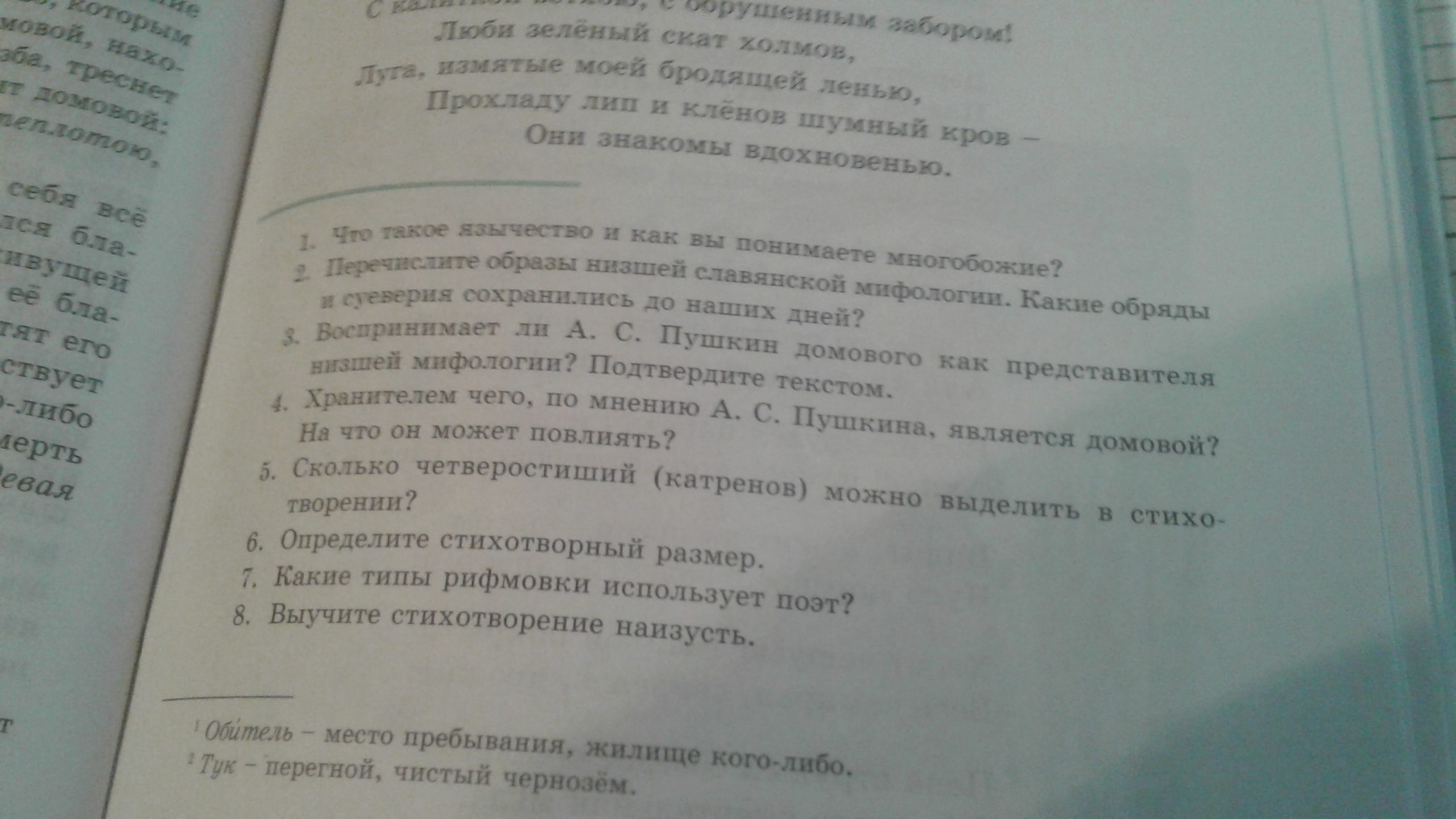 3. Нет, он считает его более значимым персонажем и обращается к нему с почтением "Тебя молю, мой добрый домовой,