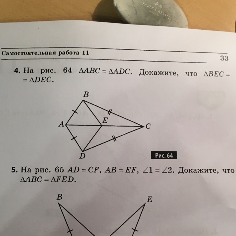 Следовательно треугольники ВЕС и DEC равны по двум сторонам и углу между ними