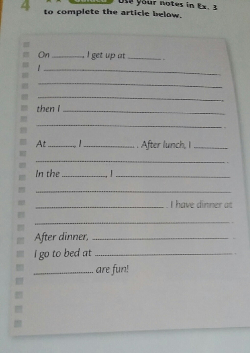 On the I get up at seven o' clock