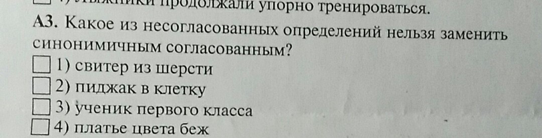 3) ученик первого класса., т.к. это несогласованное определение нельзя заменить синонимичным согласованным.