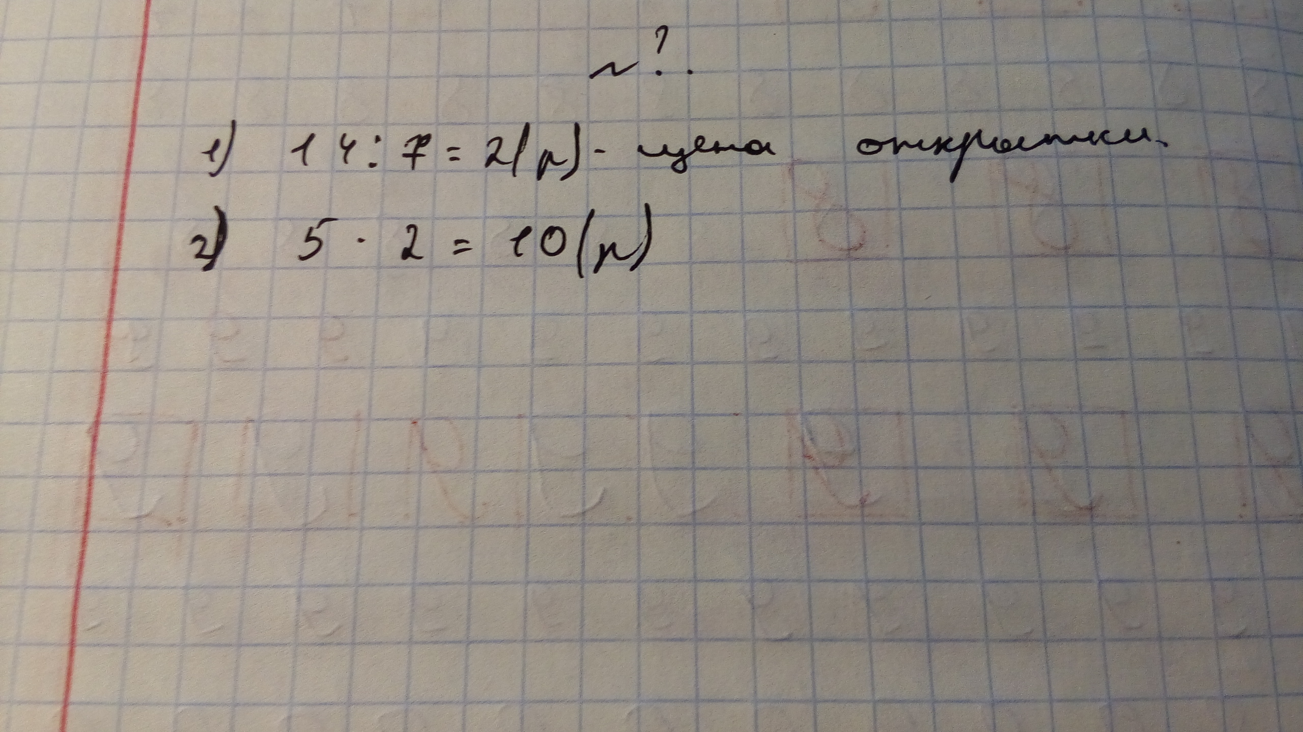 условия задачи помогите сделать.Дима и олег купили открытки по одинаковой цене .дима купил 7 открыток,а олег 5 открыток .открытки димы стоили 14 р .сколько заплотил за покупку олег