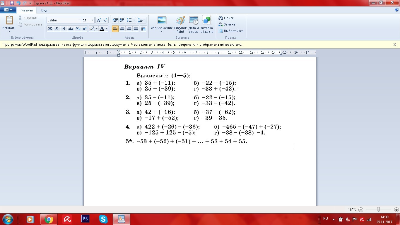 Пример типа а + (-b) = равен примеру а - b;
