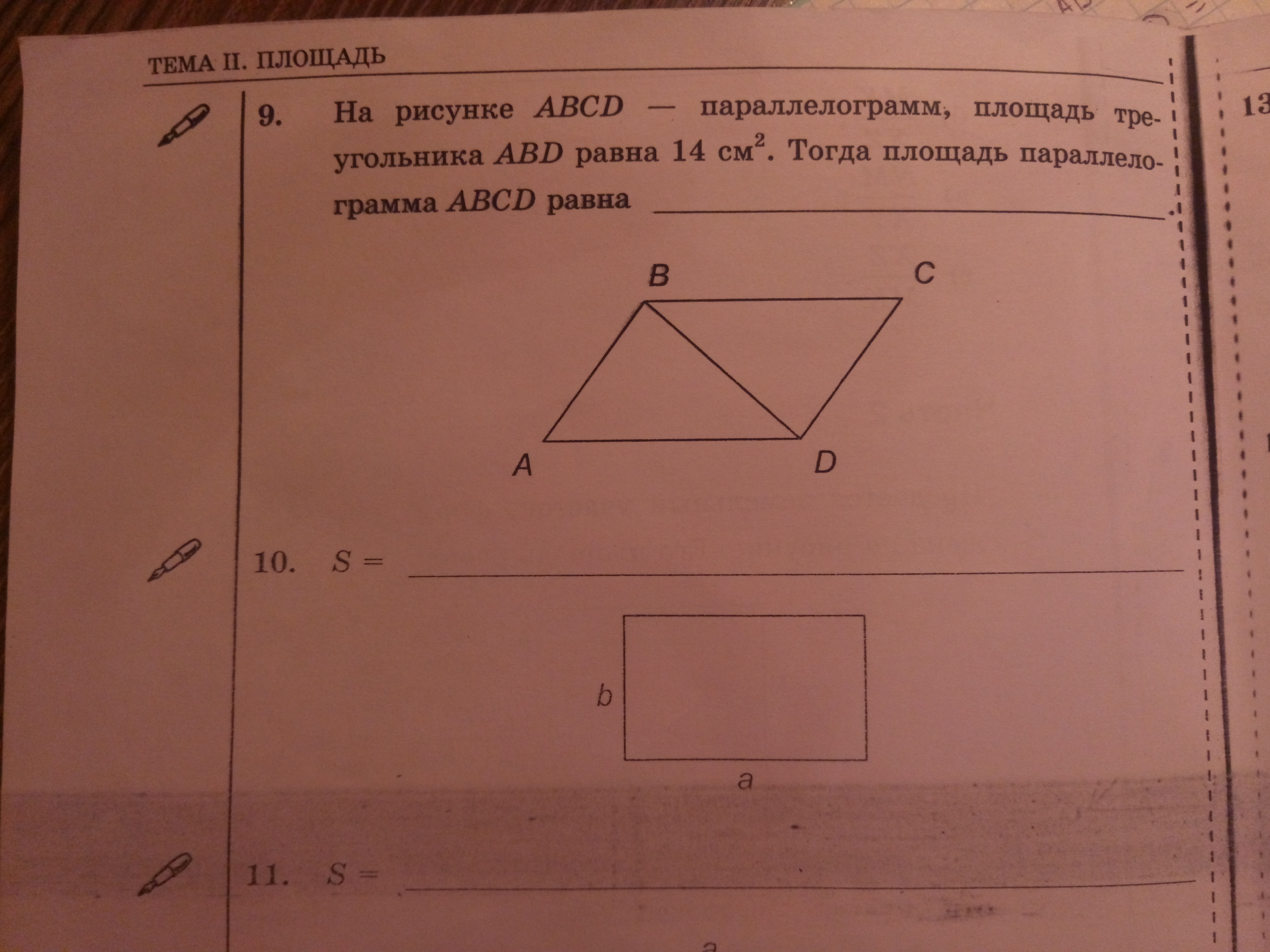 S = 28 см в квадрате