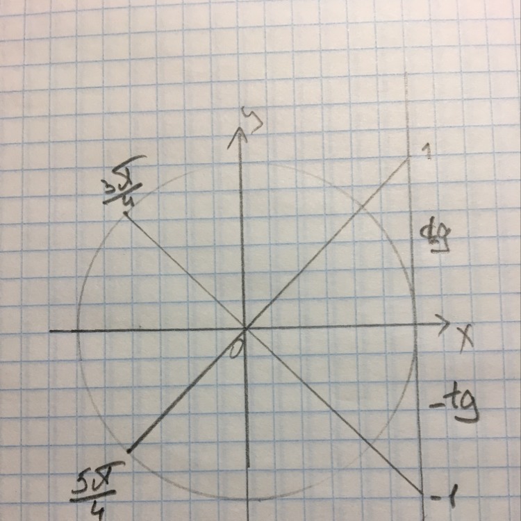 Потому что при 3пи/4 точка пересечения находится на отрицательной стороне, а 5пи/4 в положительной