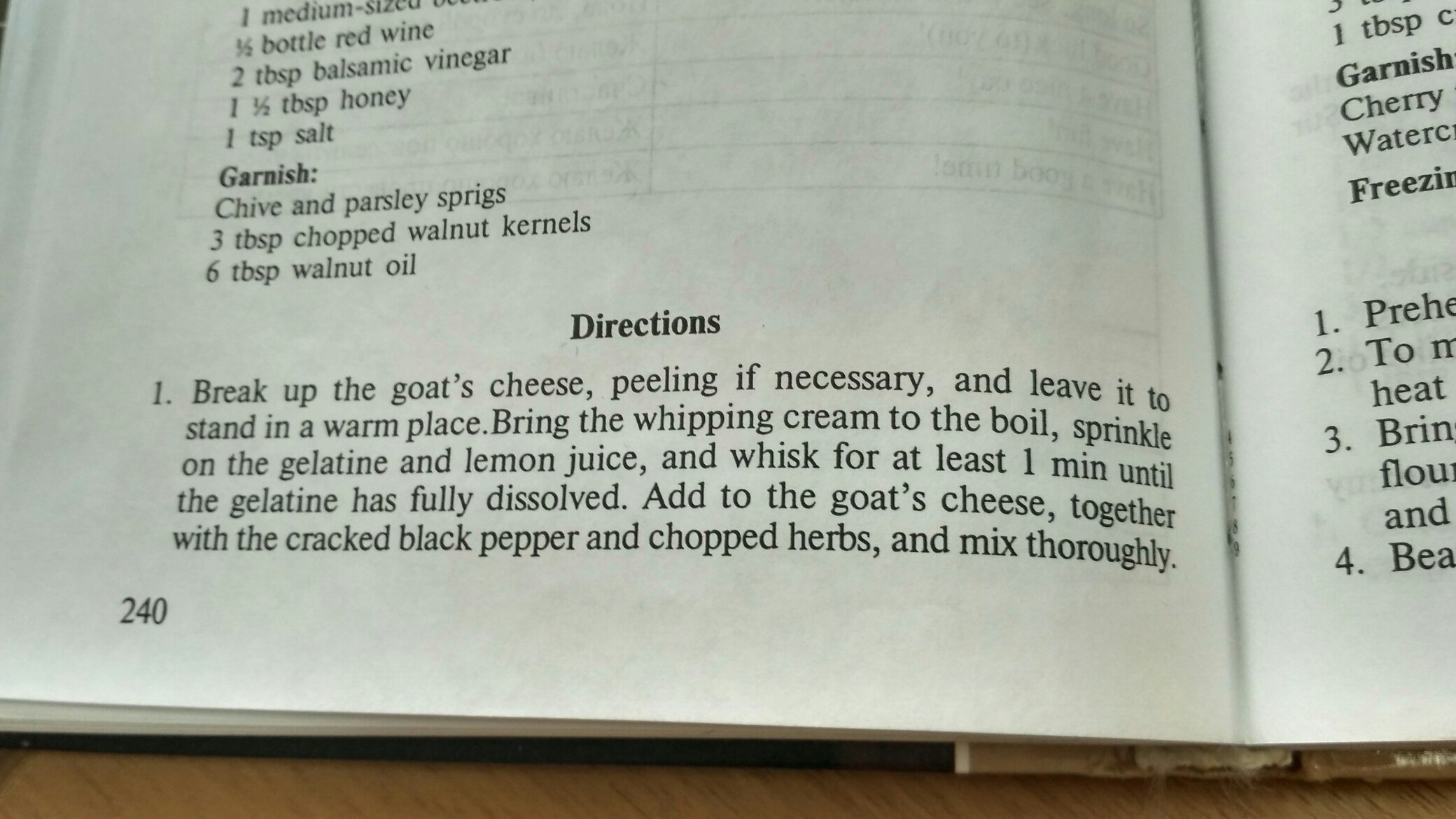 1. Разбить так сыр, пилинг, при необходимости и оставить его настоять в теплом месте принести взбивать крем на, посыпатьна желатин и лимонный сок, и взбивать не менее минуты, покажелатин полностью растворится. Добавить в козий сыр вместес треснутым черным перцем и измельченными травами, тщательно перемешайте