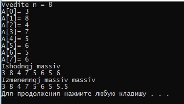cout << "Izmenennqj massiv massiv" << endl; //Измененный