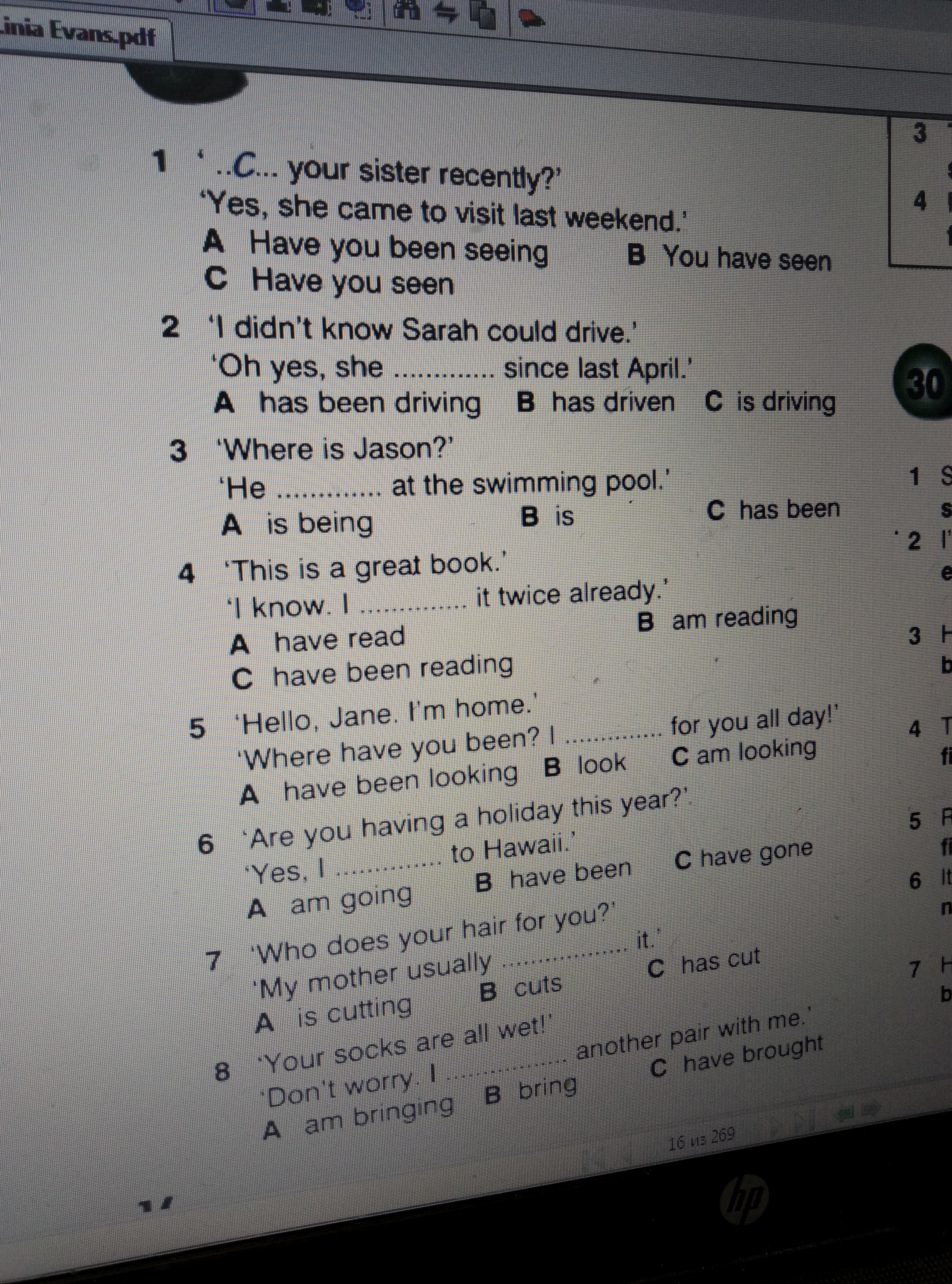 2a, 3b, 4a, 5a, 6a, 7b, 8c