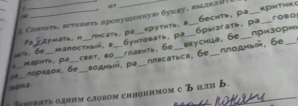 Раздумать,исписать,раскрутить,взбесить,раскритиковать,безжалостный,взбунтовать,разбрызгать,разговориться,изжарить,рассвет,возглавить,безвкусица,беспризорник,распорядок,безводный,расплясаться,бесплодный,а последнего слова не видно.