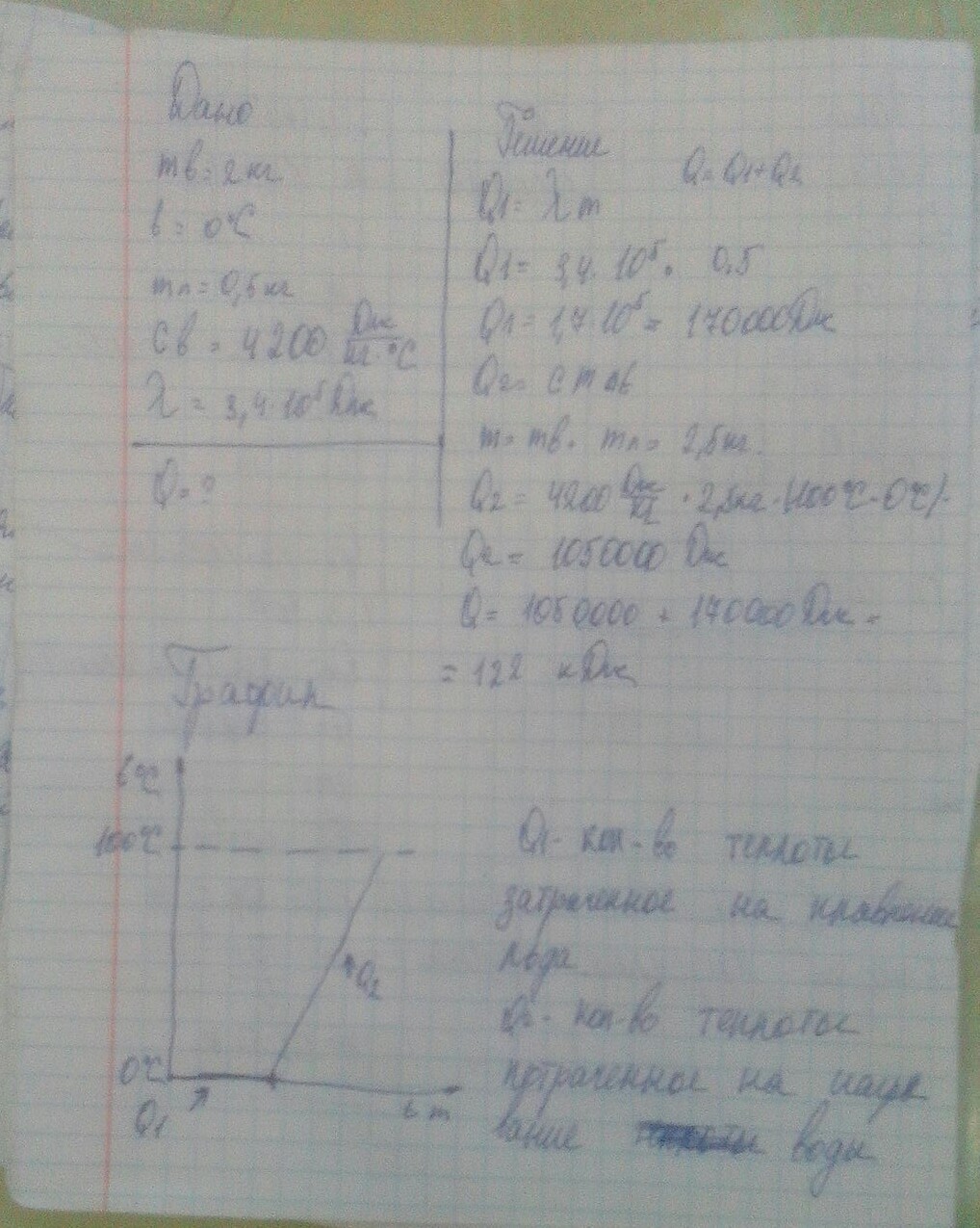 В сосуде с водой, масса которой 2 кг при температуре 0 градусов, плавает в 0.5 кг льда. Сколько теплоты нужно потратить, чтобы довести воду до кипения при нормальном атмосферном давлении?