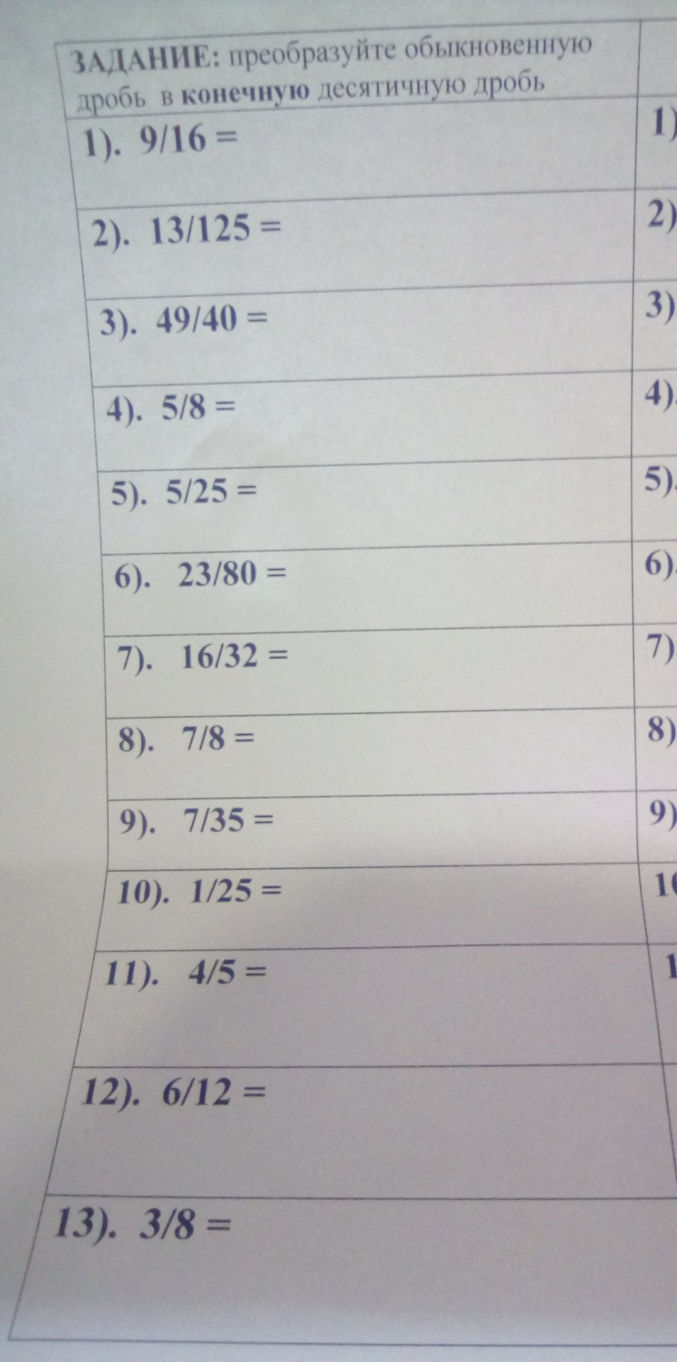Преобразуйте обыкновенную дробь в конечную десятичную дробь