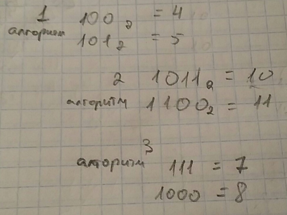 Алгоритм преобразования числа, записанного в двоичной системе счисления, состоит в том, что если последняя цифра числа 0, то она заменяется на 1. Иначе весь набор подряд идущих в конце числа единиц заменяется нулями, а 0, стоящий слева от этого набора, заменяется на 1. Наконец, если в исходном числе нет ни одной цифры 0, то все 1 заменяются на 0, а слева от них записывается 1. Этот алгоритм исходное число увеличивает...