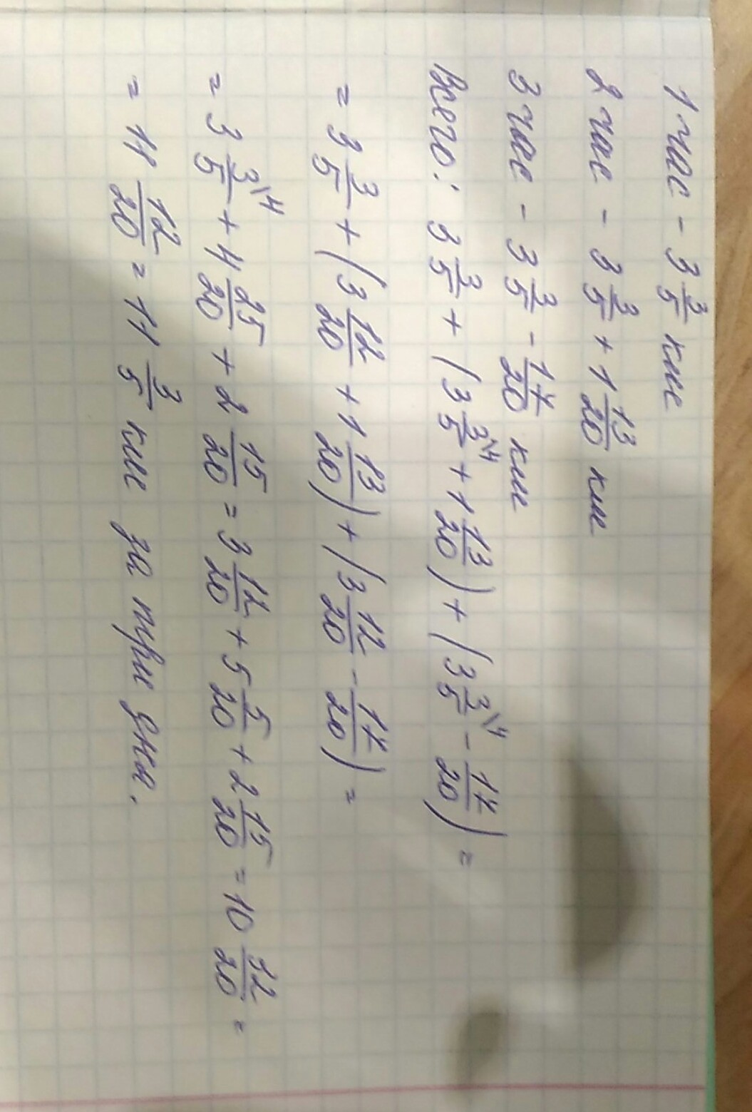 путник в первый час прошел 3 целых 3/5 км что на одну целую 1 13/20 км меньше чем во второй час и на 17 20 км большечем в третий час. Сколько км прошел путник за эти 3 часа