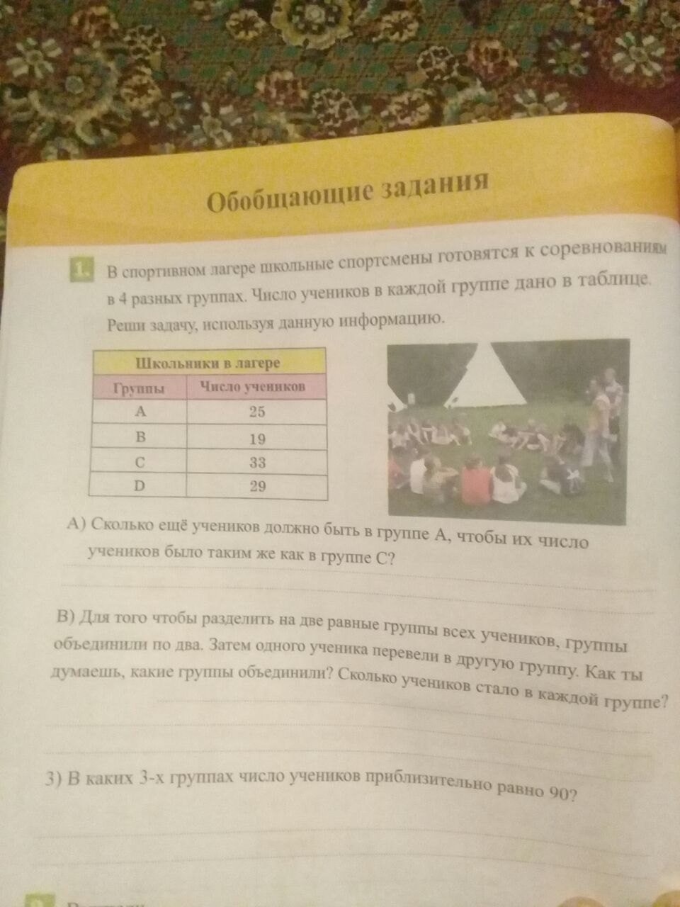 б) объединили группы б ц,а также д а .Всего стало 53 ученика.