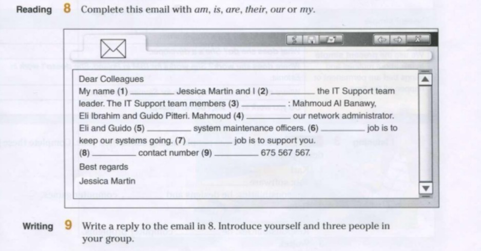 1-is, 2-am, 3-are, 4-is, 5-are, 6-their, 7-our, 8-our, 9-is