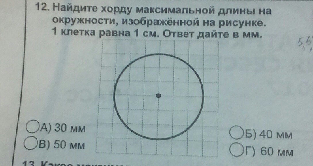 Здесь правильный ответ:Г) , та как хорда не проходит через середину, то тогда 6см=60мм