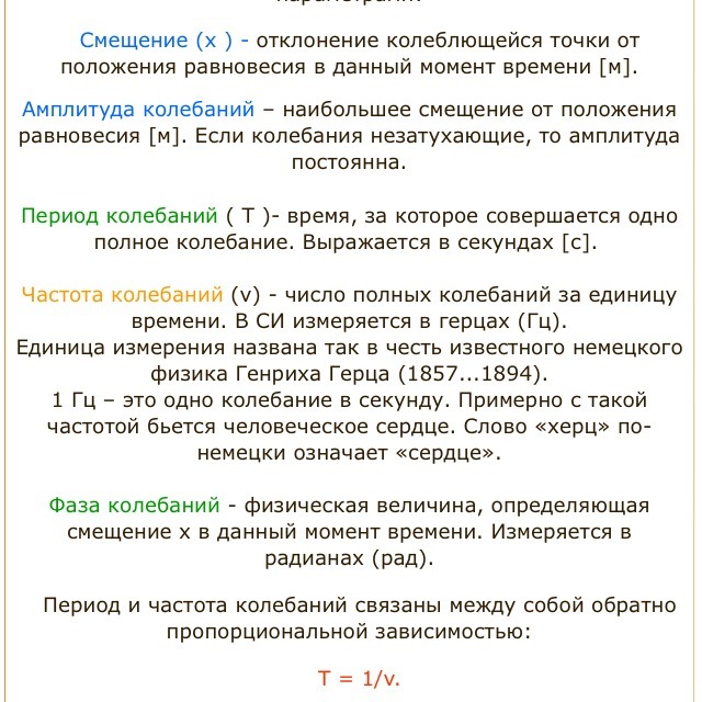 величины характеризующие калебательные движения, и их определения, формулы кто напишет 5 звезд и спасибо дам