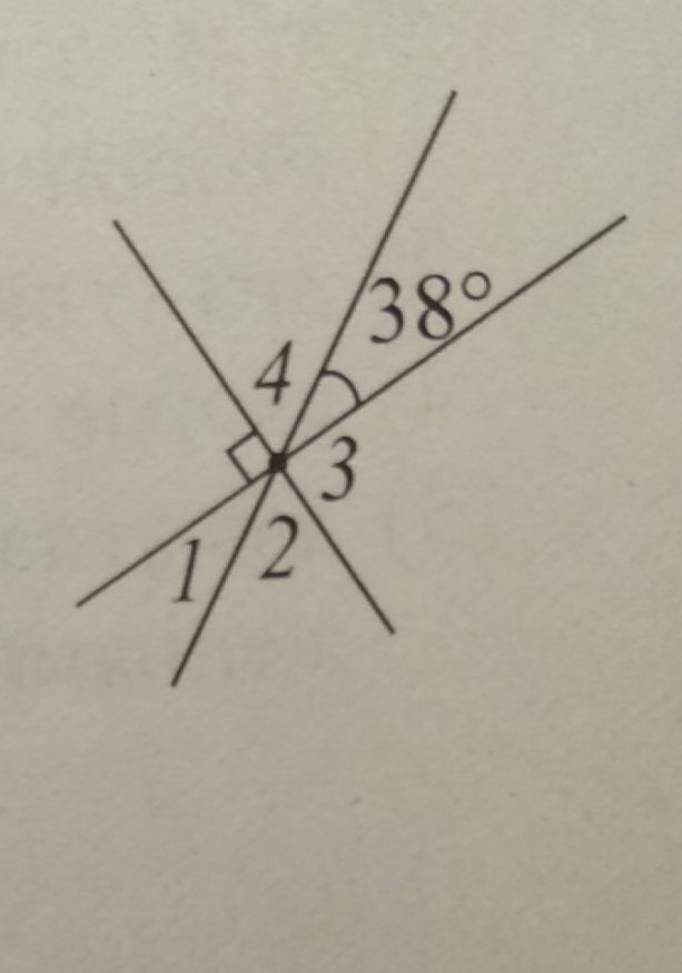 Угол 1 равен 38 градусам (т.к это противоположный угол)