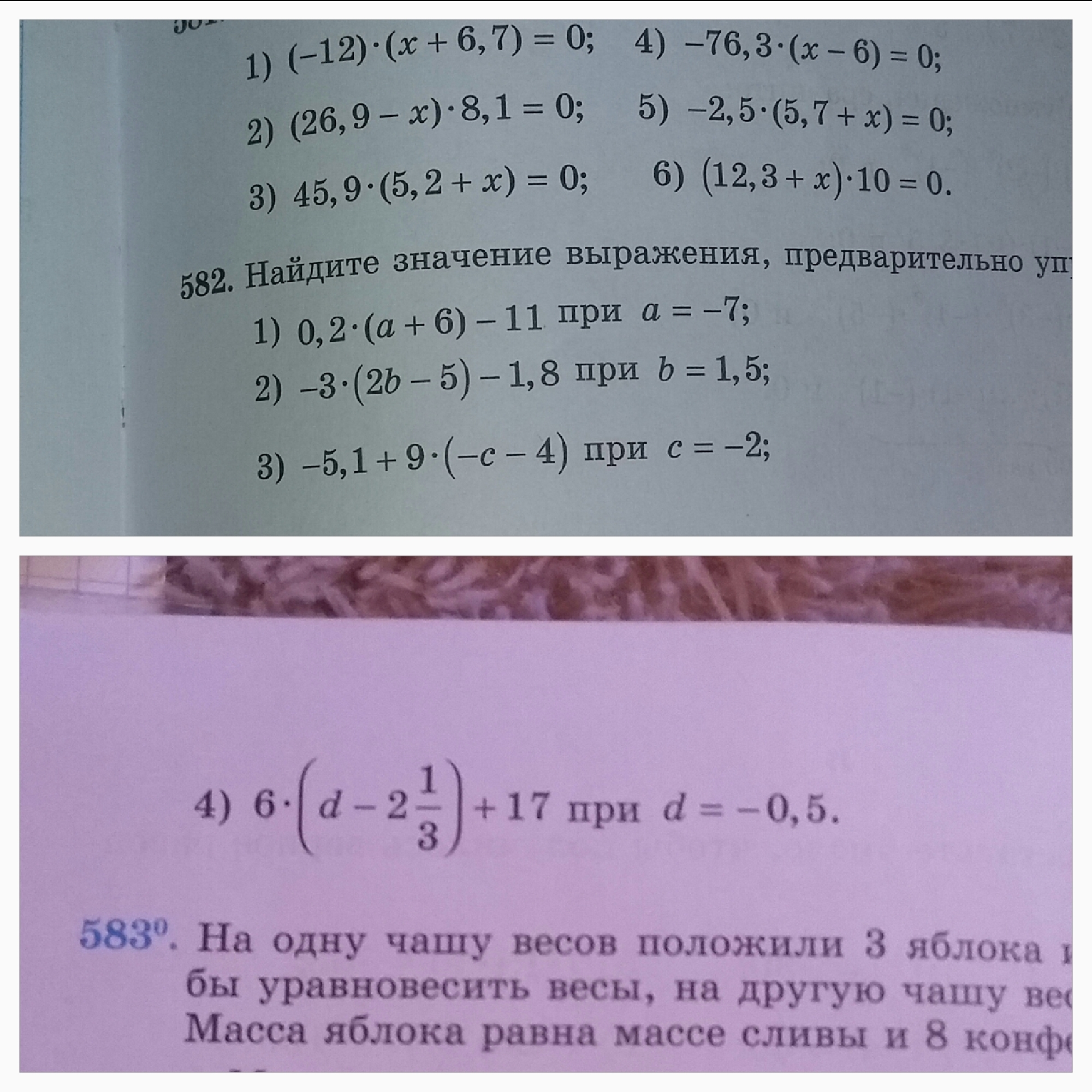 4) 6(d-2 1/3)+17 при d= - 0,5