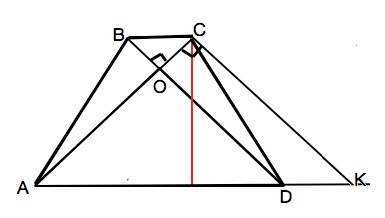 Такой способ нахождения площади трапеции можно применять, когда известны длины оснований и диагоналей. Площадь трапеции равна площади треугольника АСК которую можно вычислить по ф. Герона.