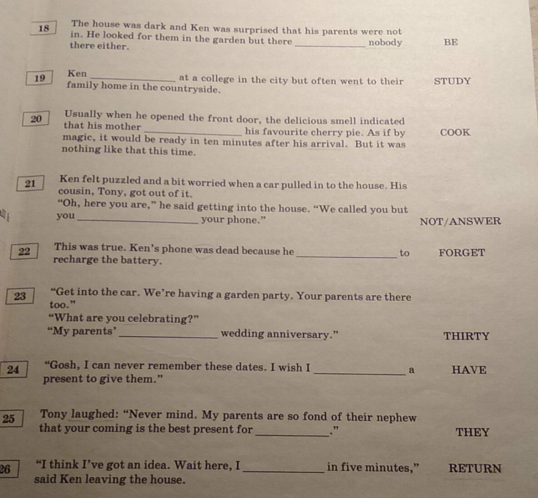 was, studies, cooked, didn't answer, forgot, thirtyth, have, them, will return.